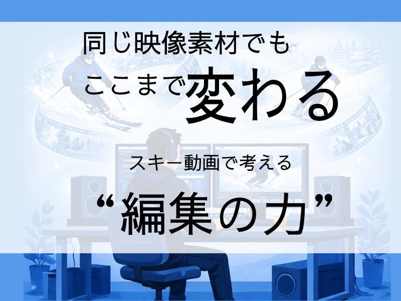 映像制作の現場では、「撮った素材をどう見せるか?」が常に問われます。 私たちコブラ映像札幌でも、動画編集の重要性を日々実感しており、 最近では雪国・北海道らしくスキー映像を編集する案件がありました。 実はスキー映像って、一見すると「素材が単調」「映像がワンパターンになりやすい」と思われがちで、実際のところそうなりがちなのです。 でも、編集次第でその印象は180度変えることができます。 今回は“同じ素材でも編集の意図でここまで印象が変わる”というテーマで、ブログをお届けします。