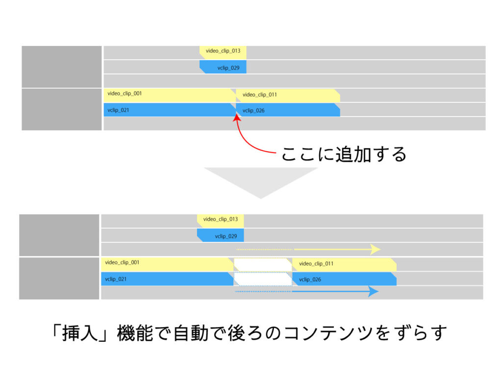 新たにクリップをタイムラインに挿入する際、「すべての素材を後ろにずらして挿入したい!」ということもよくある編集作業かと思います。
